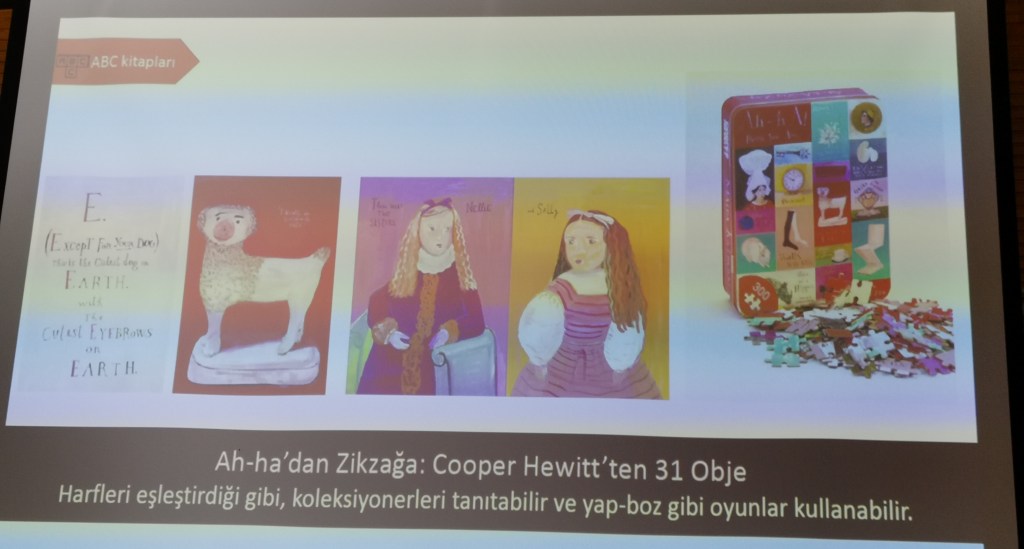 Koç Üniversitesi’nden Dr. Ilgım Veryeri Alaca ve Betül Gaye Dinç’in müzeler tarafından hazırlanmış çocuk kitaplarındaki metin ve resim ilişkisini, çocuk edebiyatı, kültürel miras ve sanat eğitimi literatüründen faydalanarak irdeledikleri, müzelerdeki objelerden yola çıkan kitapların, mevcut kültürel mirası nasıl görsel ve metinsel olarak sunduğunu sorguladıkları sunumlarında Türkiye ve yurtdışından müzelerin hazırlamış oldukları kitapalar üzerinden çocuklar için sanat ve kültürel mirası sunma stratejilerini değerlendirdiler.