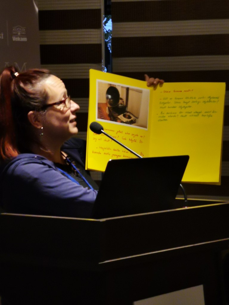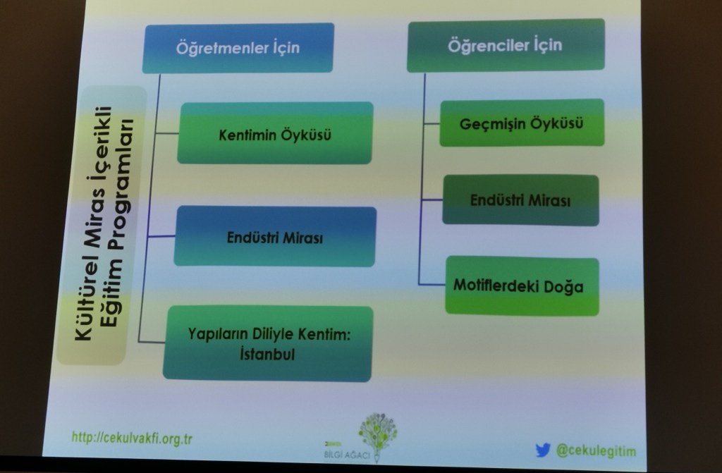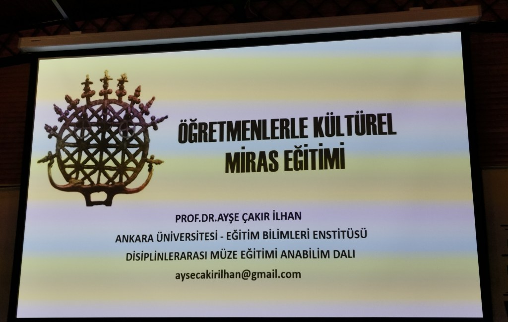 Ankara Üniversitesi’nden Prof. Dr. Ayşe Çakır İlhan konuşmasında öğretmenlerle yürütülen kültürel miras ve müze eğitimi çalışmalarına odaklanırken, Milli Eğitim Bakanlığı’nın hizmet içi geliştirme etkinlikleri kapsamında Ankara Üniversitesi Müze Eğitimi Anabilim Dalı’na hazırlattığı öğretmenler için müze eğitimi programı hakkında bilgi verdi.