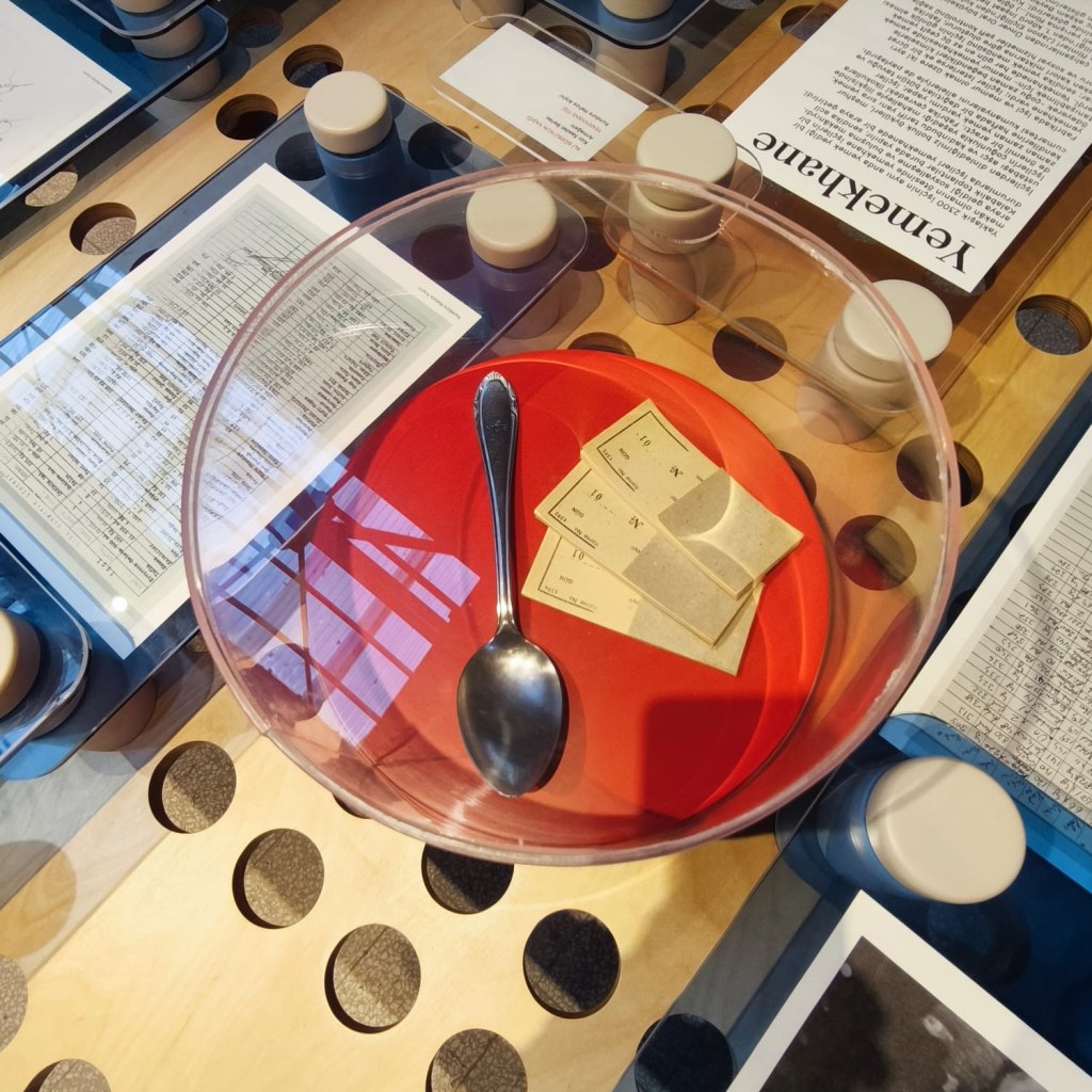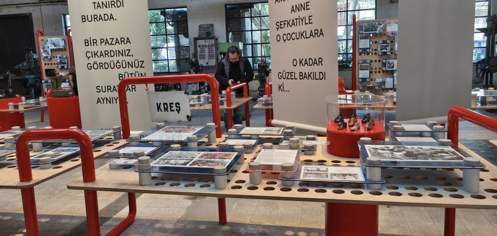 İkinci ziyaretimde ise uzman bir rehberin; somut kültürel miras, somut olmayan kültürel miras ve endüstri mirası kavramlarıyla ilişkilendirerek fabrikanın 200 yılllık tarihçesinden başlayıp Sözlü Tarih Çalışmalarından elde edilen veriler ve bağışlardan örneklerle görsel olarak desteklenen çok keyifli anlatısına şahitlik ettim. Serginin, kataloğuna (https://beykozkundura.com/wp-content/uploads/2025/03/SERGI-KITAPCIGI_TR.pdf) ve sanal olarak ziyaretine internet sayfasından ulaşılabiliyor. Ben yine de katalogdan da biraz alıntı yapmak istiyorum.